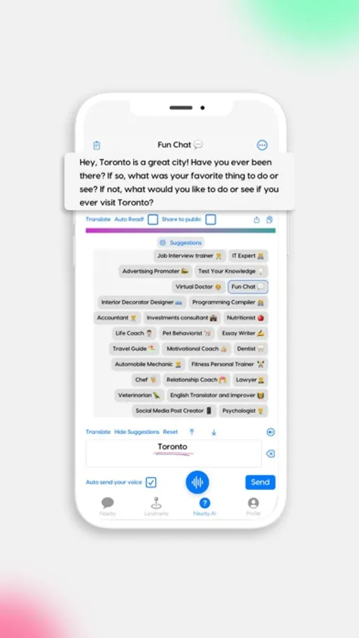3.AI Chat: Get personalized recommendations and assistance with our one-to-one AI chat feature! With a range of prompts covering everything from local recommendations to travel tips, you can export PDFs, and use speech-to-text, text-to-audio, auto-read, and auto-post content. And with our translation feature, you can easily communicate with locals in their language, making social interaction a breeze.