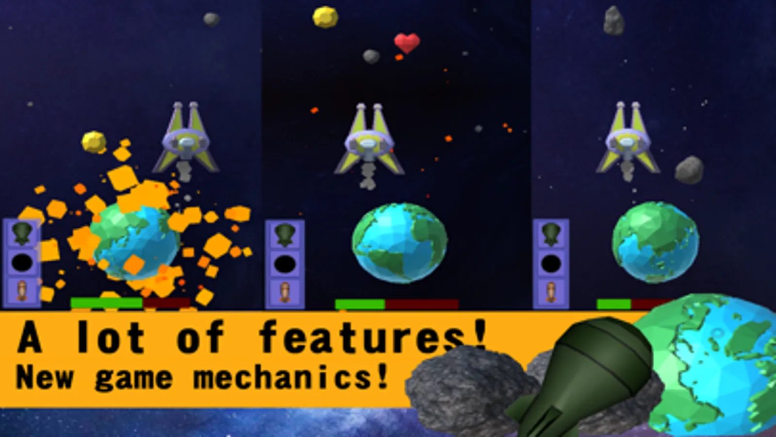 Earth is at danger. A lot of asteroids with different size and speed are moving towards to the Earth. You are the only one hope to save our planet and all the life at it. Move spaceship to protect Earth from asteroids. Also you can use special equipment like bombs, rockets and even artificial black holes. All these items will help you to complete your mission and save the Earth. Space Shooter 3D is a game with wonderful graphics, interesting gameplay, cool game effects and beautiful interface.