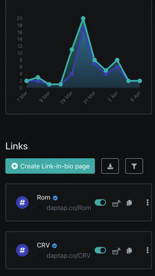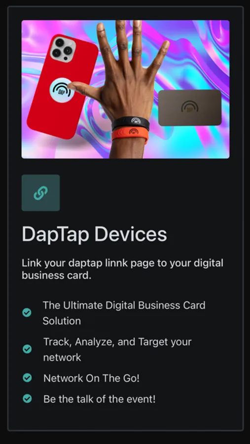 DAPTAPCO is an innovative company that helps businesses and individuals take their online presence to the next level. It provides an easy-to-use platform that helps users to create a customized website with multiple links, enabling them to create an effective and engaging online presence. The platform allows users to quickly and easily add links to their content and direct traffic to various online destinations. DAPTAPCO also offers a suite of analytics tools to help users keep track of how their content is performing and who is visiting their site. With its intuitive design, DAPTAPCO enables users to create an effective website with a few clicks, giving them more control and visibility over their online presence. The company also offers a range of customization options, Qr codes, NFC powered devices, and ai features allowing users to personalize their website, add their own branding, and create a professional look and feel. DAPTAPCO is an invaluable tool for creatives and entrepreneurs who want to increase, track, and scale their visibility and reach online and in the real world.
