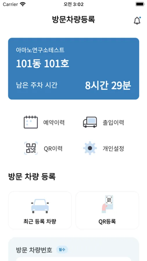 방문 차량에 대한 세대별 예약기능, QR 코드 스캔을 통한 간편한 입차 기능, 등록되지 않은 차량에 대한 세대방문시 부정출입차량 신고 기능, 방문증 발급기 키오스크 비밀번호 입력을 통한 별도 예약 필요없이 비밀번호 4자리 입력 후 입차 가능