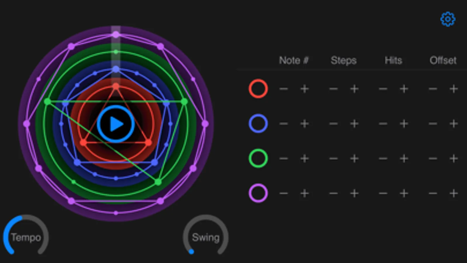 • Control all the parameters of Euclidean rhythms for up to four simultaneous tracks.