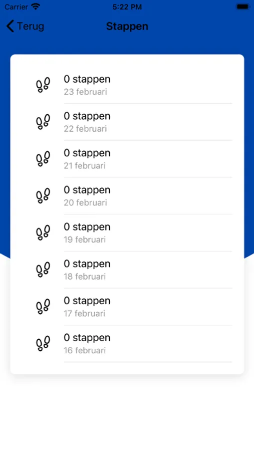 De App gebruikt Apple Healthkit om uw stappen uit te lezen. Hiervoor kunt u in de App zelf toestemming geven.
