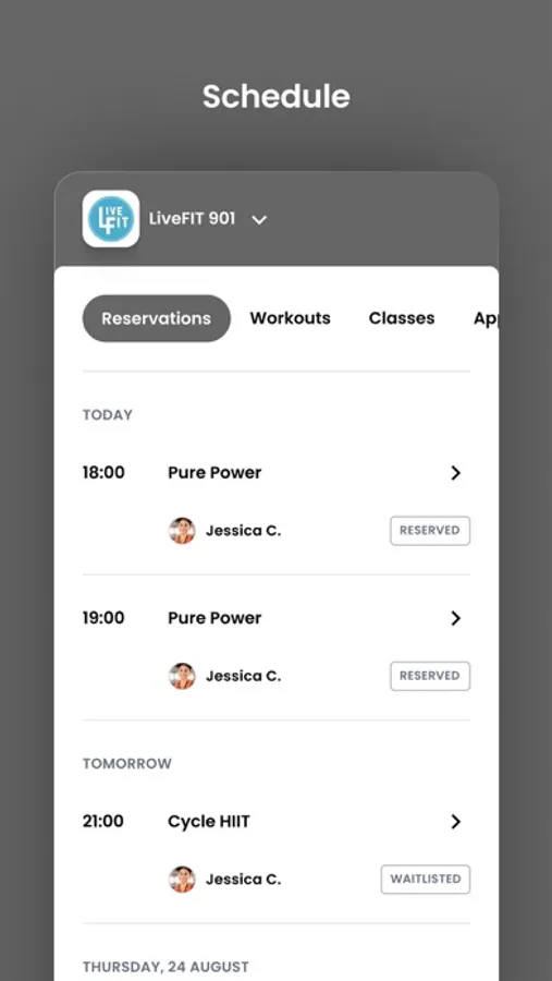 For members of LiveFIT 901 to reserve their place in a class, sign up for gym events, and general account management like updating headshots and credit card on file.