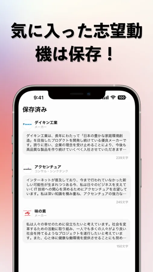 志望企業を選択して、社風やサービスを反映してその企業に合った志望動機に仕上げます。