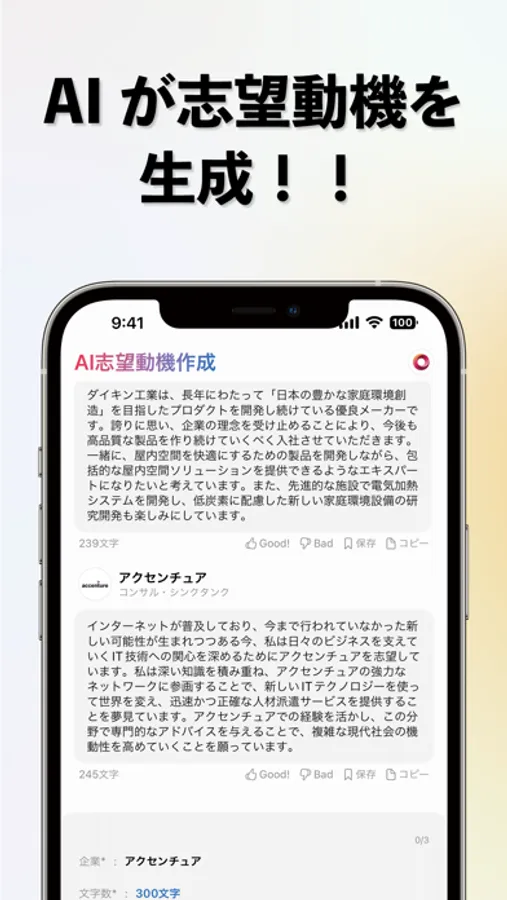 AIがあなただけのエントリーシートを作成します。