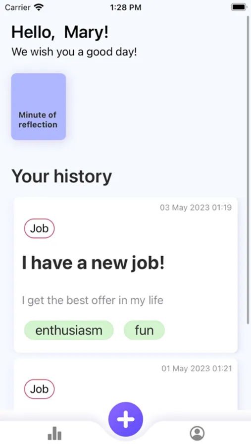 This application is designed to quickly fix your emotions, feelings during the day at any time interval.