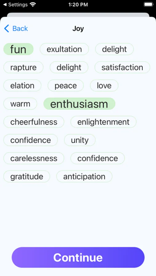 The app provides personalized insights and analysis of yourself emotions.