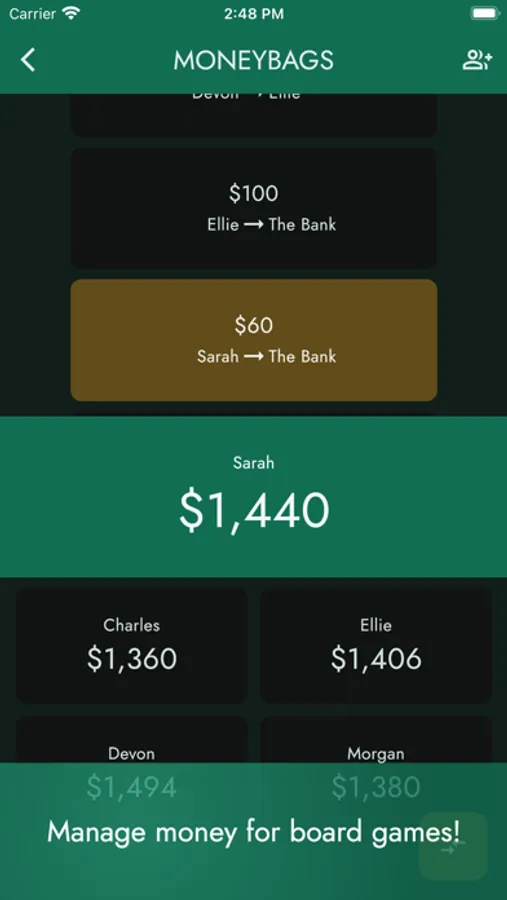 - Manage money for virtually any board or card game!