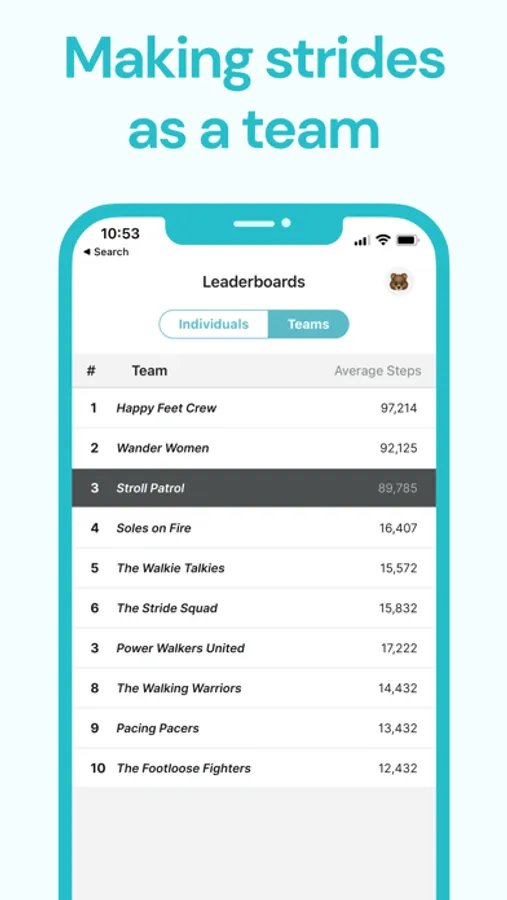 Our App offers challenges set for the corporate teams which encourage each participant to take part in a walking challenge. Steps are counted and on achievement of milestones converted into charity contributions. In the App, both team and personal leaderboards contribute towards fun and team building. Total charitable contributions achieved by the corporate teams would support the CSR practices and policies of the subscribing corporation.