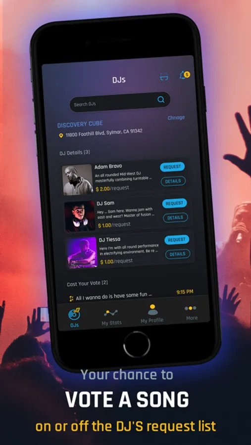 Introducing Djplaymysong app – the revolutionary way to request music in a nightclub without having to walk up to the DJ booth and yell over the loud music. With Djplaymysong app, you can make your request from the comfort of your seat with just a few taps of your finger! Once you make your request, the app will notify the DJ and they can accept, decline or put your request in voting. Allowing everyone on the app to vote yes or no on the song requested. If the Dj accepts, they will get paid for the songs they play. The app also allows you to follow your favorite DJs and see what they're playing. You can even save songs that you like so that you can easily request them in the future. Djplaymysong app is the perfect way for DJs to interact with their fans and for club-goers to get their music requests heard. Djplaymysong app, you can make the nightclub experience more fun, interactive, and entertaining than ever before!