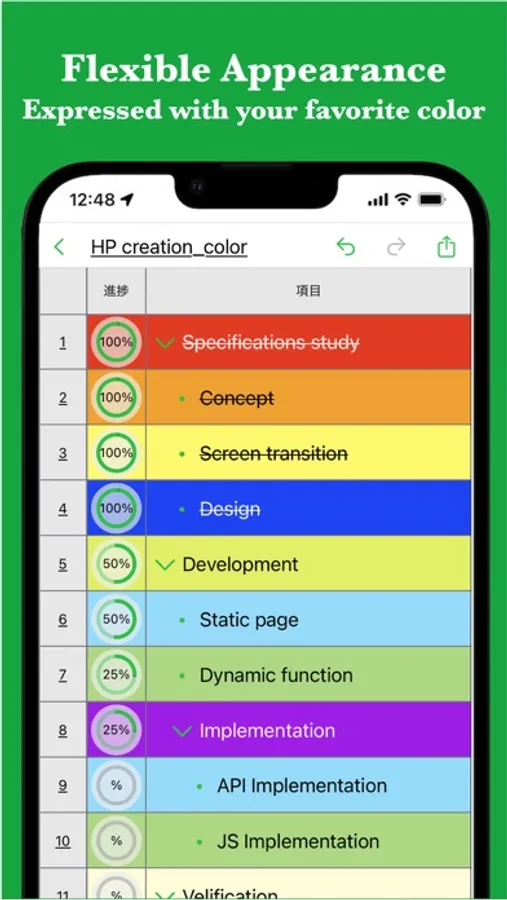 It offers various expressions such as progress management, color coding, and links.