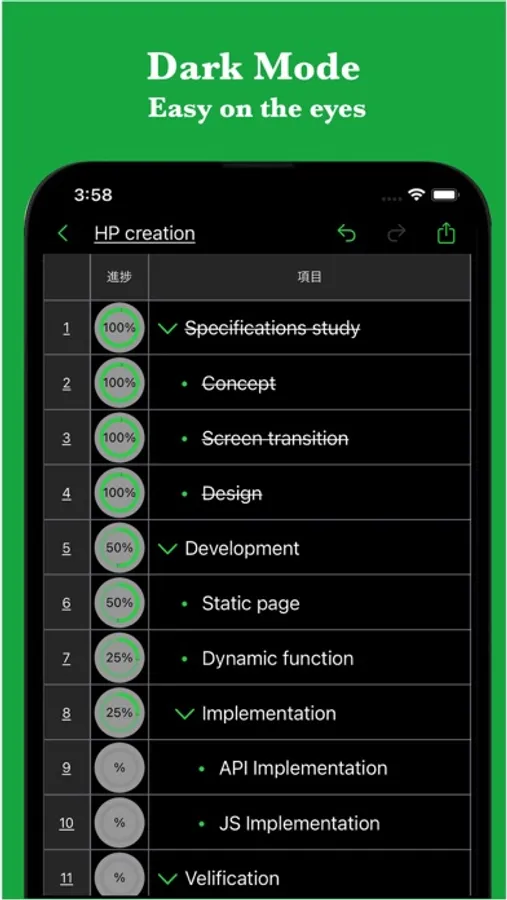You can insert progress rates for each item and use them for progress management.