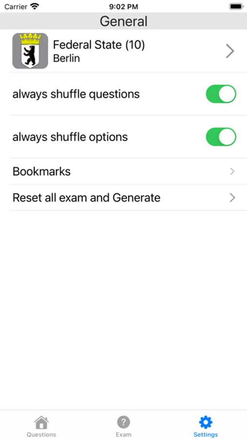 Settings Screen: