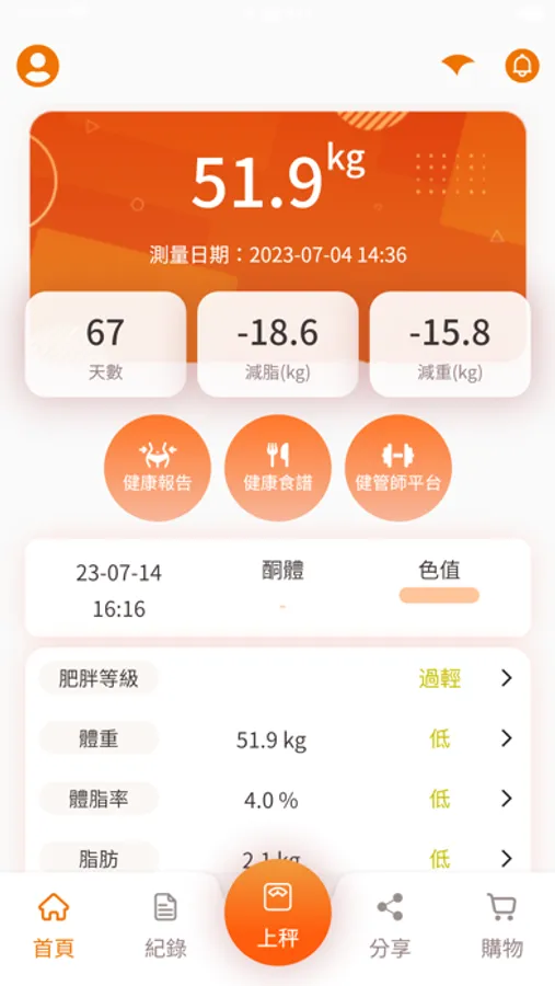 通過每天上秤檢視身體各項數據及記錄,並透過每天的數據檢視自己的身體狀況。