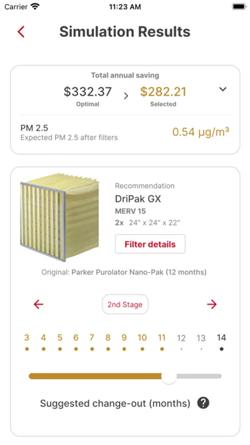 With TCO Simulation, our salespeople can easily recommend the best air filters for our customers based on their current air filter usage. Our advanced algorithms take into account a variety of factors, such as filter efficiency, energy consumption, maintenance costs, and others, to help our salespeople make informed recommendations that save our customers money while delivering superior air quality.