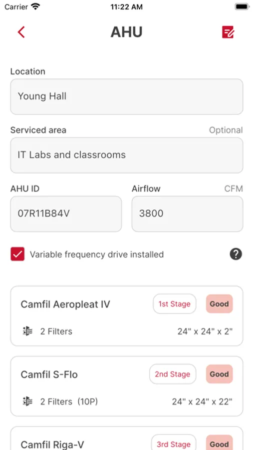 Filtration Audit is another valuable tool that helps our salespeople gather critical information about our customers' air handling units. With Filtration Audits, our salespeople can take pictures, determine air filter conditions, write observations and suggestions, and generate an audit report for their customers.