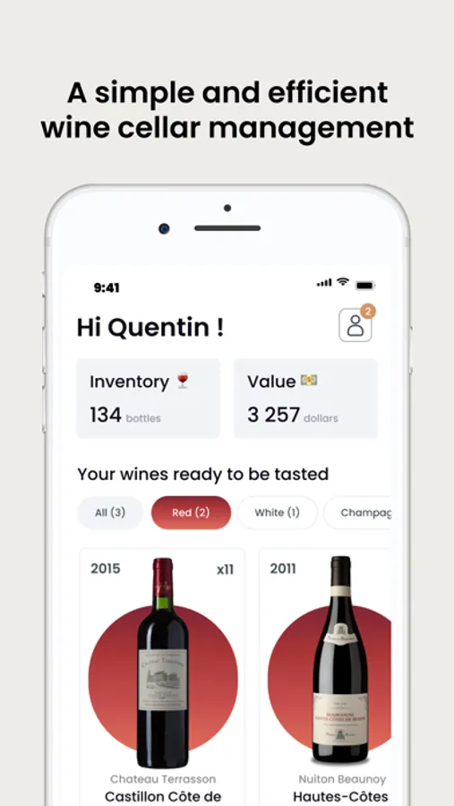 Oeni manages your wine cellar and recommends the right wine at the right time.