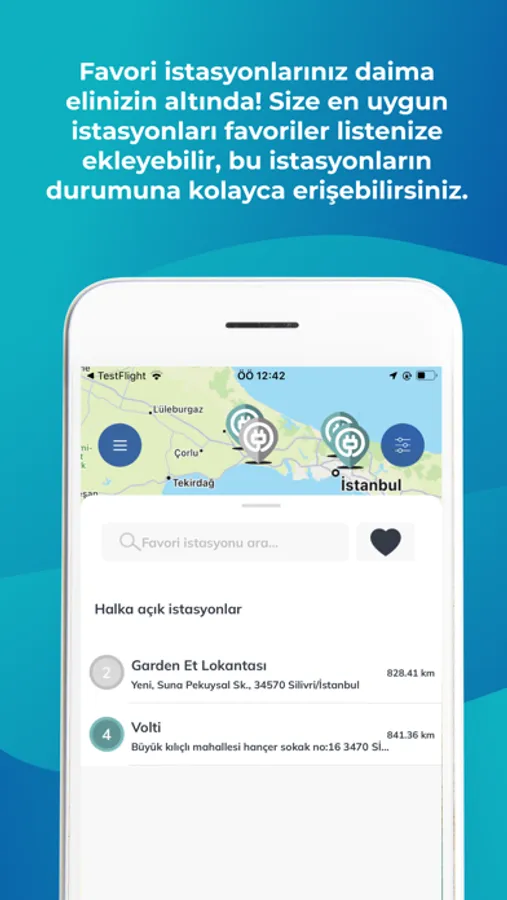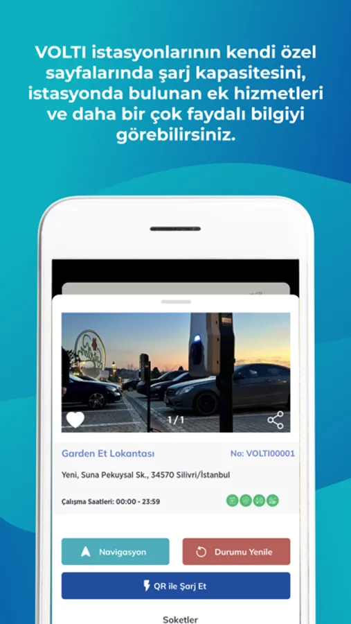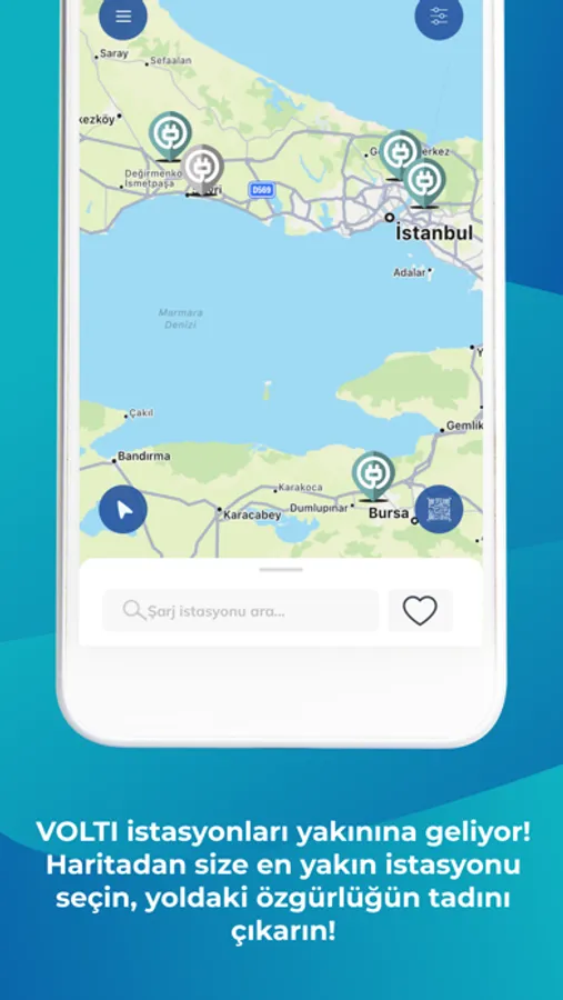 VOLTI Network mobil uygulaması ile VOLTI şarj istasyonlarının lokasyonlarını görüntüleyebilir, geçmiş kullanımlarınızı inceleyebilir ve istasyonlardaki QR kodu okutarak aracınızı kolayca şarj edebilirsiniz. En sevdiğiniz istasyonlarımızı favori istasyonlar listenize ekleyebilir ve kolayca şarj işlemine başlayabilirsiniz.