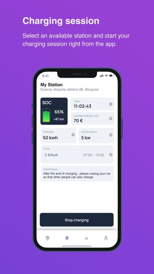 - use smart charging to optimise your car's charging process (this can either be a super fast charge or a charge that saves your battery and the environment)