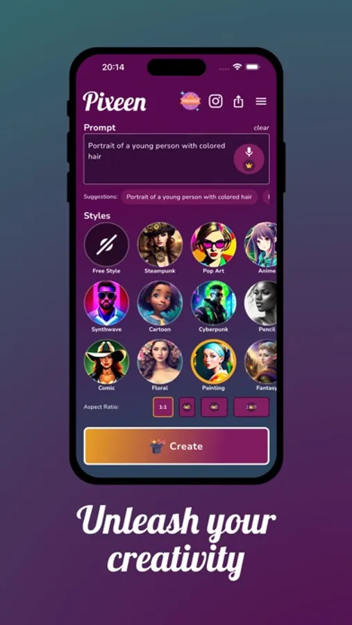 Introducing Pixeen - the app that lets you create stunning art with just a few taps! Using the power of artificial intelligence, Pixeen generates beautiful images that are perfect for social media posts, memes, or anything else you can imagine.