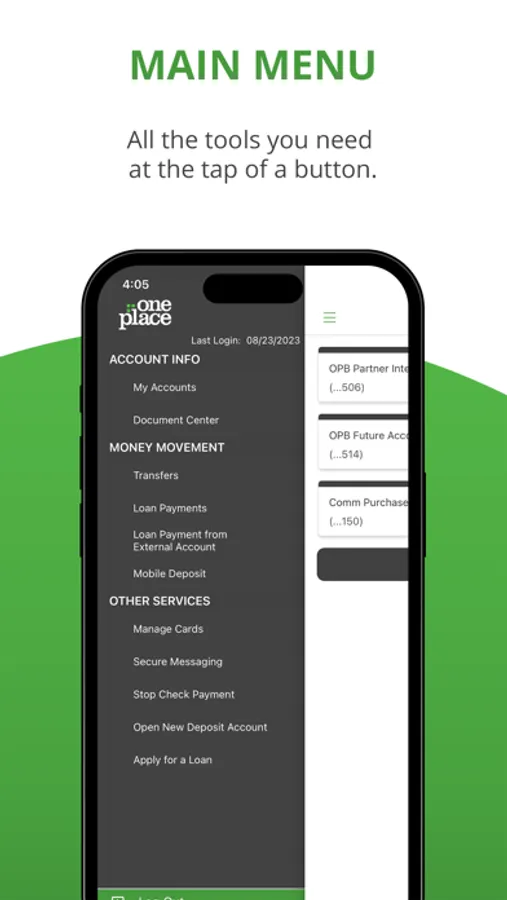 Download the OnePlace Basic banking app* to manage your accounts, view real-time data, and access online statements and notices. Everything you expect from online banking all in one place.