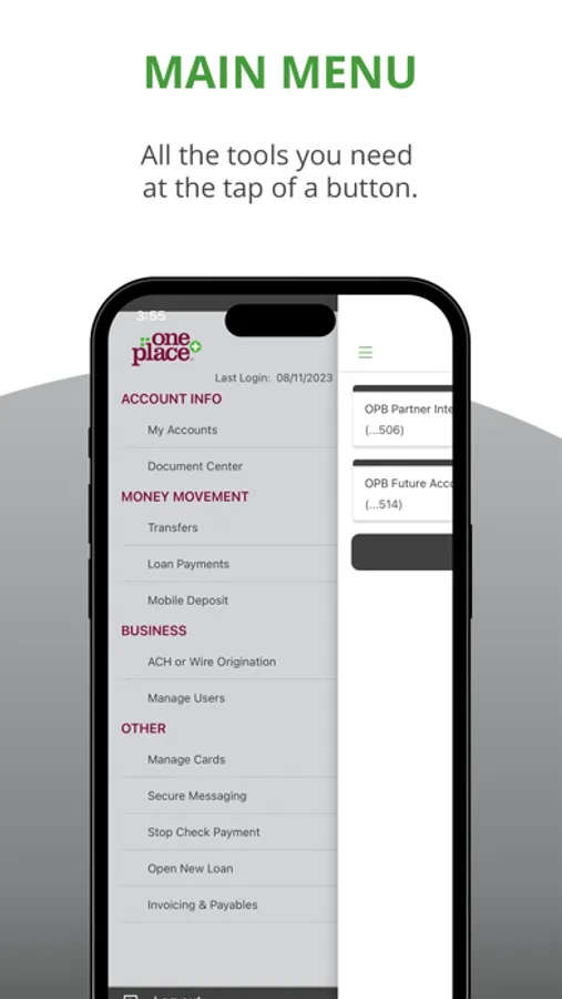 The OnePlace Plus mobile app* offers basic account management and reporting PLUS exclusive access to direct deposit, Same-Day ACH, and other great features.