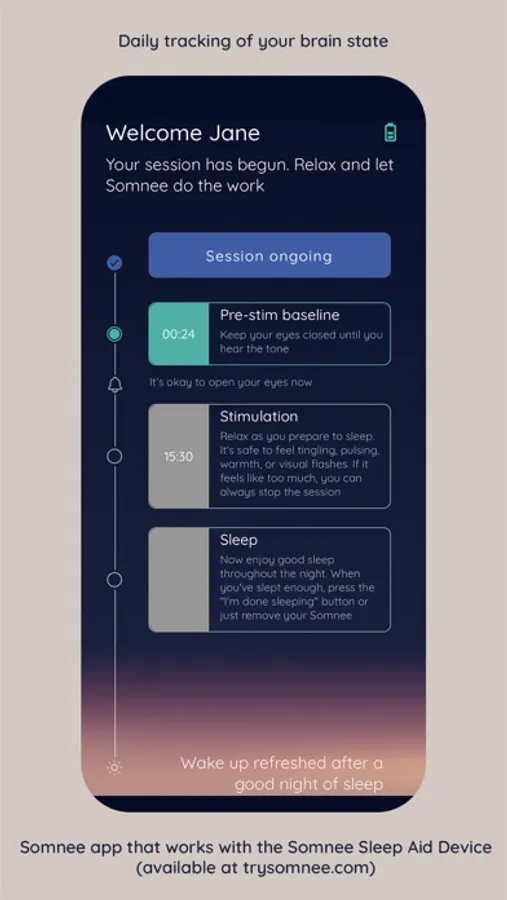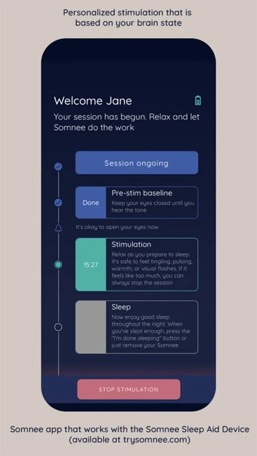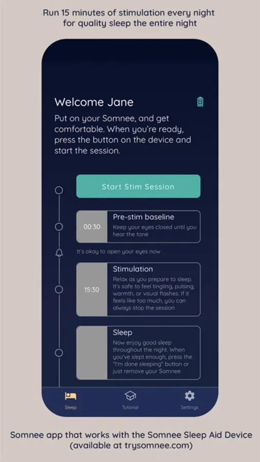 Once you self-register your account through the app, it lets you connect to the Somnee headband device and run nightly personalized stimulation sessions for 15 minutes at bedtime for quality sleep every night.