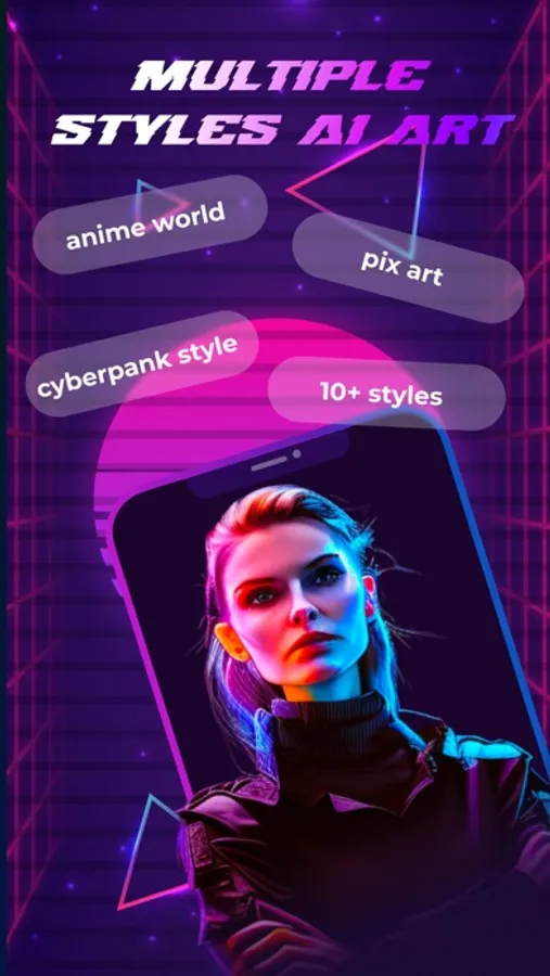 CyberAI is an app that allows users to create custom images with a different themes. The app offers a variety of options to choose from, including backgrounds, characters, clothing, accessories, and more.