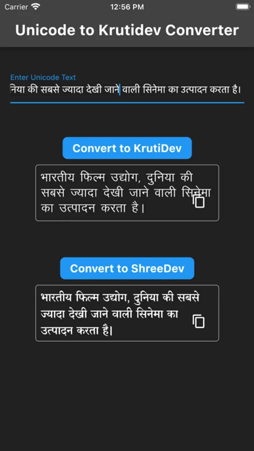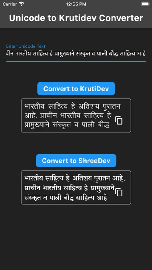 With its user-friendly interface, users can simply type or paste the text in Unicode font in the app, and the app will instantly convert it to KrutiDev, ShreeDev font. The converted text can then be copied and shared with others through various messaging apps, social media platforms, or email.