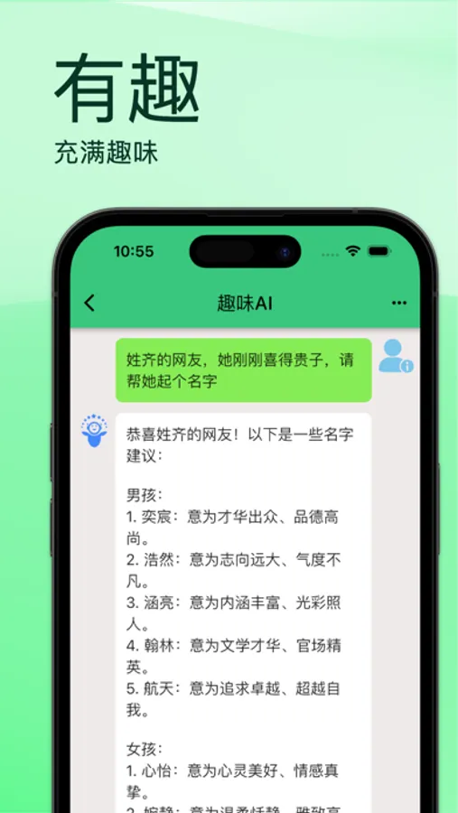 Nice AI (奈斯AI)的智能助手能够为您提供有趣的聊天体验、回答问题,甚至为您提供一些合理的建议和帮助。