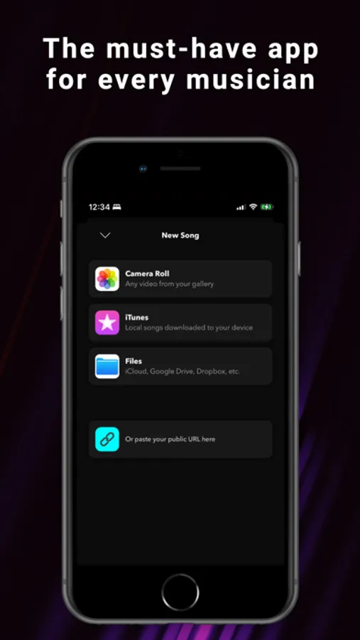 Import songs from your music library, cloud services, camera roll, public URL, etc.