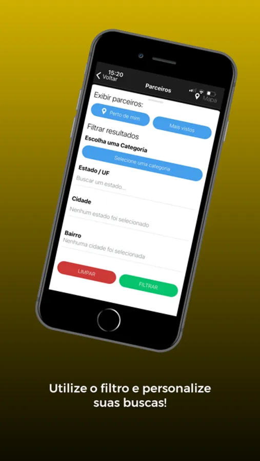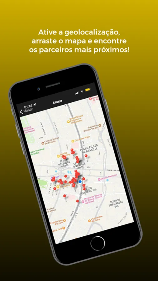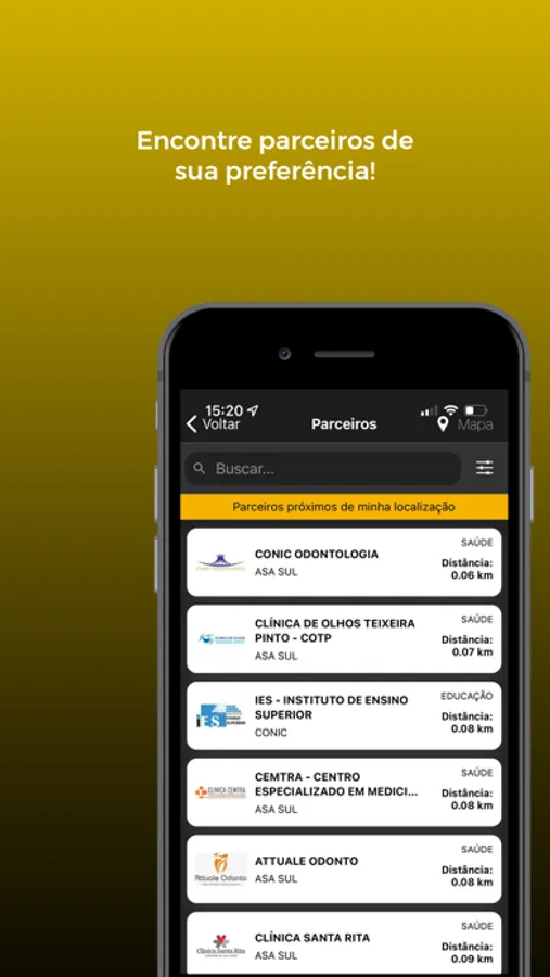 Busca de parceiros através do geolocalizador, filtragem personalizada para as buscas de empresas parceiras, acesso ao cartão virtual para utilizar os descontos, acesso a notícias e além do SAC para atendimento.