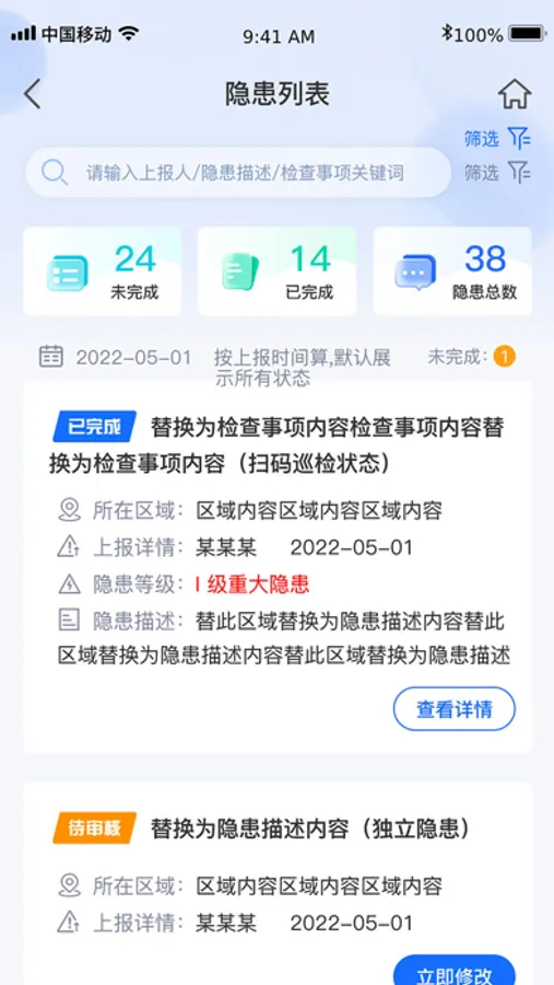 为深入贯彻落实“安全第一、预防为主、综合治理”安全方针,全面加强医疗行业安全风险预控,规范安全风险分级管控与隐患排查治理双重预防机制(以下简称双机制)工作,有效遏制和坚决防范事故,结合《国务院安委会办公室关于印发标本兼治遏制重特大事故工作指南的通知》(安委办[2016]3号)、《国务院安委会办公室关于实施遏制重特大事故工作指南构建双重预防机制的意见》(安委办[2016]11号)等相关文件要求,针对医疗行业生产特点研发了本软件,帮助医院充分发挥安全风险管控能力,落实企业主体责任。