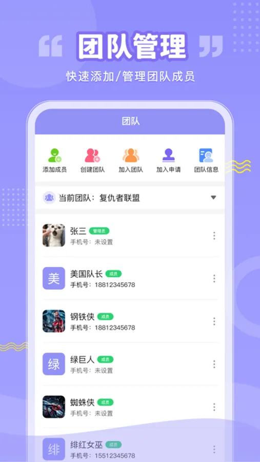 团队模式下在一个界面可以直观地为多名团第成员快速排班