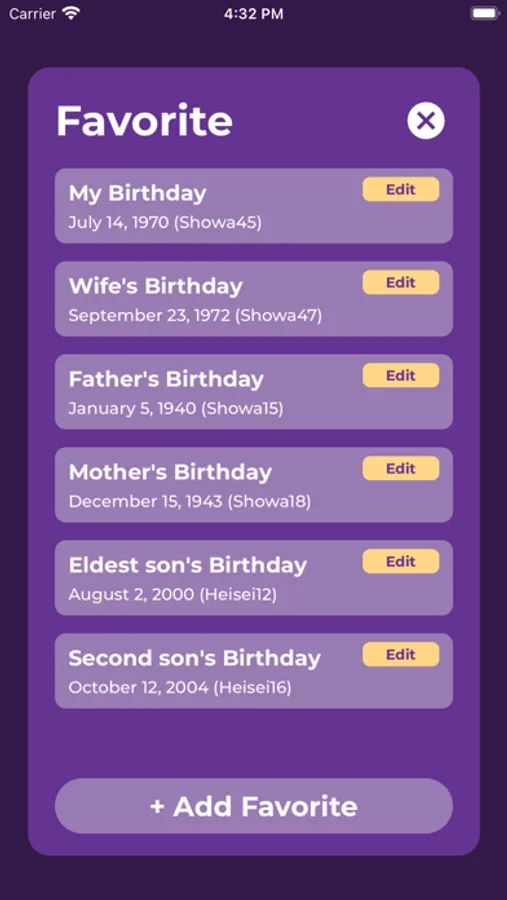 In the free version, you can create up to 1 favorite and check up to 2 histories. If you want to create unlimited favorites and check 100 records, please consider purchasing the premium version within the app.