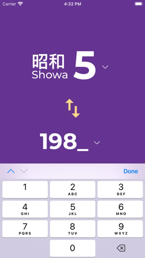 On the top screen of the app, tap the Japanese era name or the one you want to convert to the Western calendar and enter it.