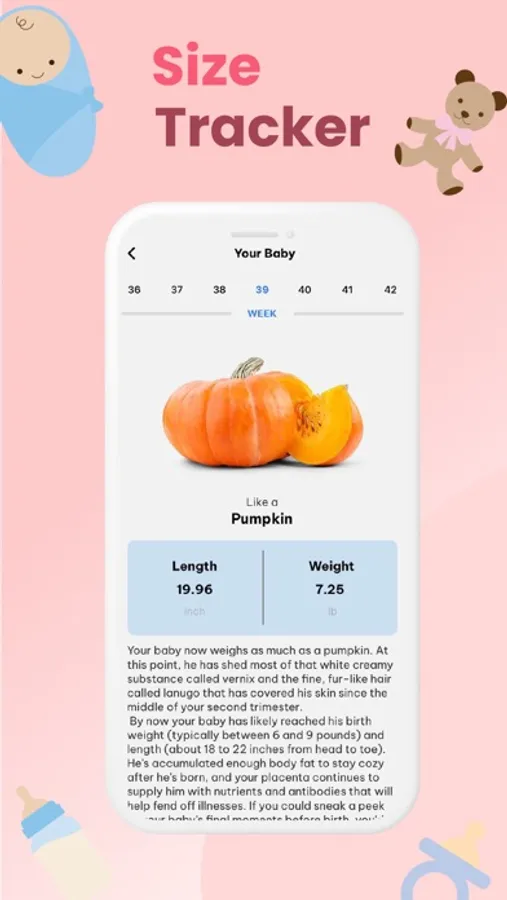 Pregnancy: Baby Growth Tracker app wishes you a healthy, full-term pregnancy and a safe delivery.