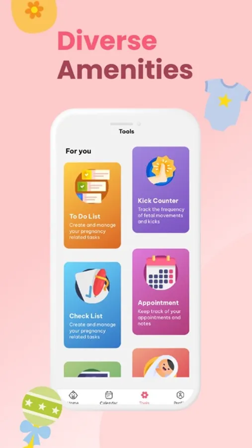 Keep up with your motherhood journey by ticking on the checklists each week, and you’ll let all stress out of your mind. You also get your baby list to check before the due date.