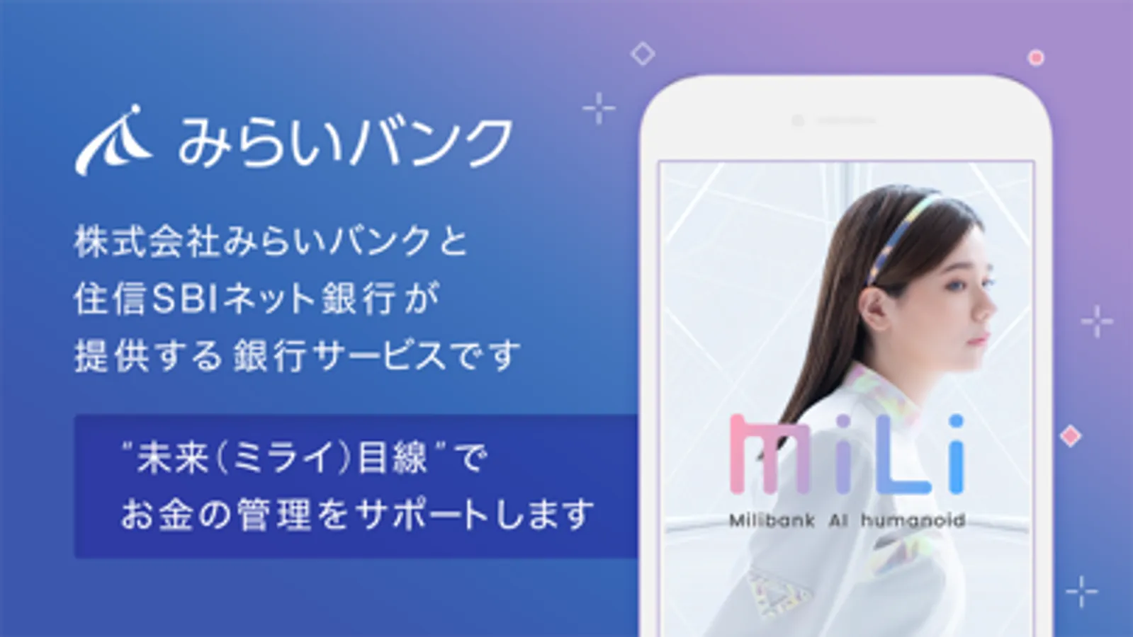 本スマートフォンアプリは、株式会社みらいバンクと住信SBIネット銀行が提供する個人のお客さま向けの銀行サービスです。