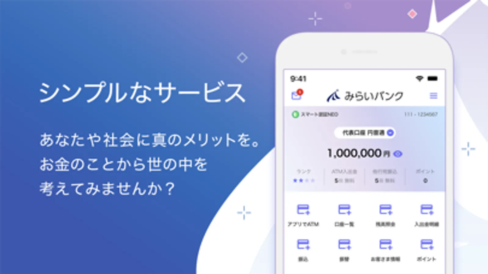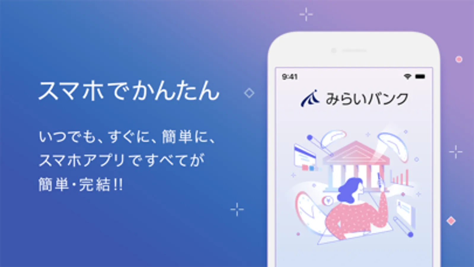 みらいバンクは“未来(ミライ)目線“であなたのお金の管理をサポートする新しいかたちの銀行です。