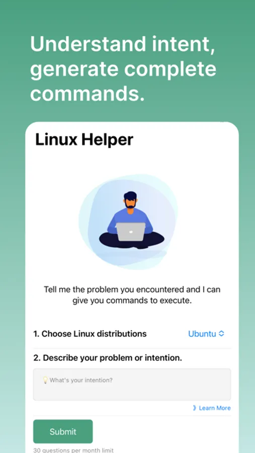 Linux Helper is an app that helps system administrators to increase their efficiency and skill by understanding your language and generating executable Linux commands. It also provides an easy-to-use voice keyboard for quick input (coming soon).