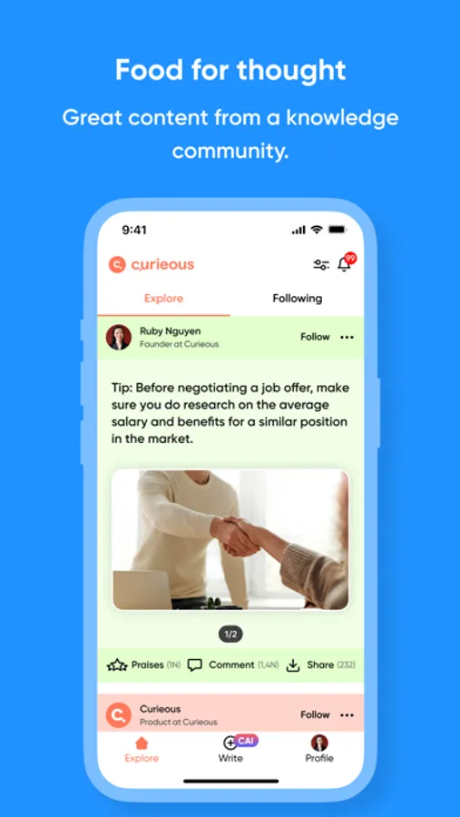 Now with Curieous you can craft concise, viral-ready content and grow a loyal audience anytime and anywhere - even while sitting on a toilet. It’s completely free!