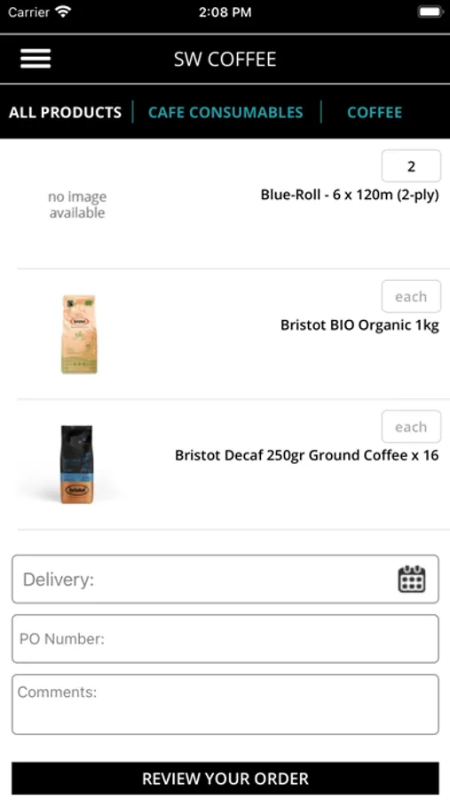 The South West Coffee Co phone app is designed exclusively for wholesale customers - Ordering is quick and easy. From your own product list simply enter quantities, select your delivery date & submit your order.