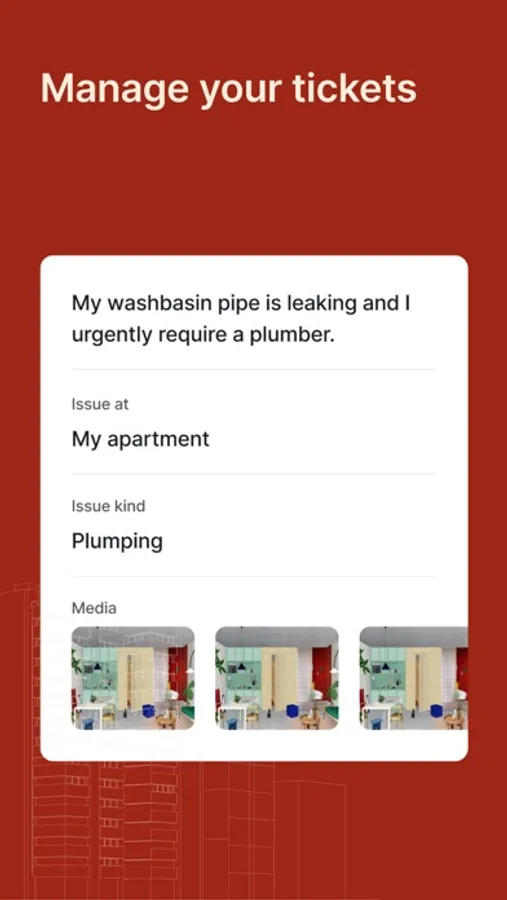 Tickets: Leaking tap? Broken door? Let the facility manager know, by quickly creating a ticket. Get status updates for each ticket created.