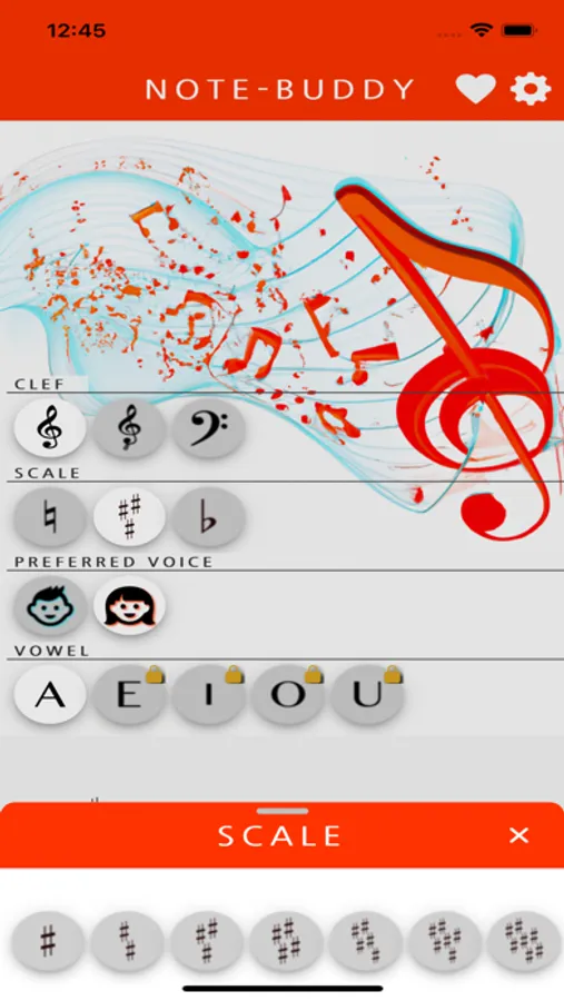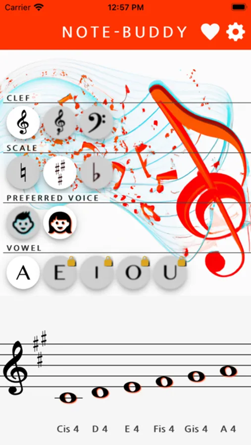 How does a certain note sound? Note-Buddy helps you with real voices! Select the clef (violin, tenor or bass), choose the scale and listen to the note you want to hear!