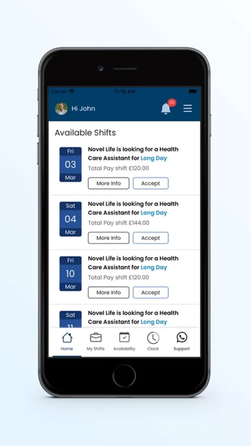 Our app helps nurses, carers and other medical staff to create an account, upload their certificates and maintain current fit to practice status. Care homes and hospitals can post shifts through the app for fast and easy notification to the allocated staff to view available vacancies and accept shifts. The app also helps the staff and employers to see their respective work history, payment history, timesheets etc.