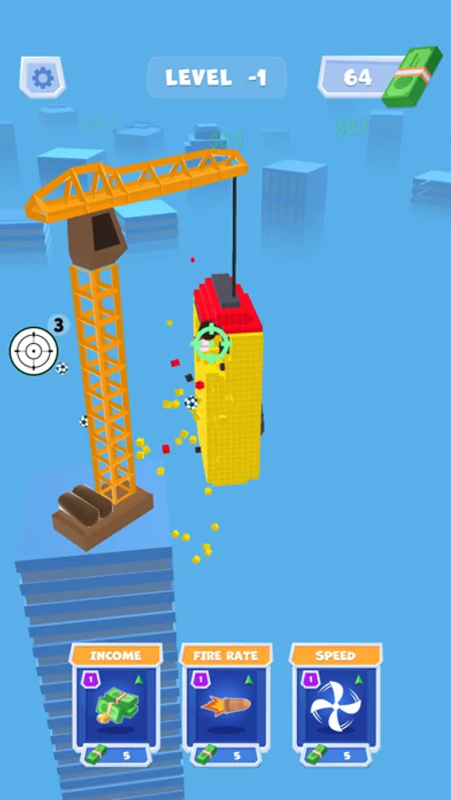 Fly around the structures with helicopter and earn game coins by launching balls and demolish them. You can blow the TNTs hidden in the structures with the sniper mode.