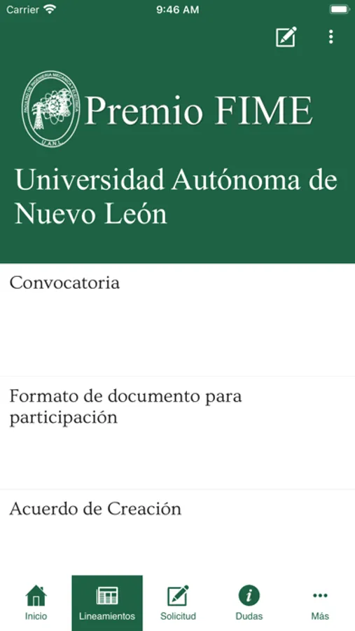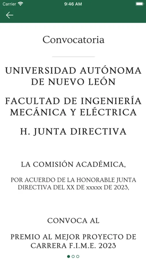 Mediante esta aplicación la comunidad de docentes y estudiantes de la Facultad de Ingeniería Mecánica y Eléctrica de la Universidad Autónoma de Nuevo León, podrán inscribir sus proyectos de ingeniería para el Permio al Mejor Proyecto de Ingeniería. El concurso es anual y aquí se podrá consultar la convocatoria y sus lineamientos de participación.