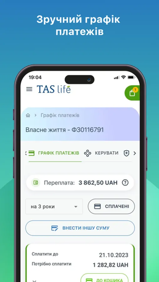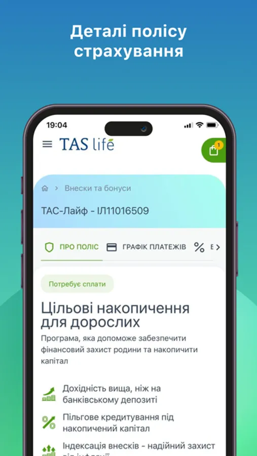 Саме тут, у вас є можливість ознайомитись з інформацією по власному полісу страхування життя, керувати його налаштуваннями, своєчасно та легко оплачувати чергові внески.