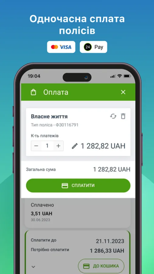 Зручний графік оплат та можливість вибору договорів та кількості платежів, одночасна оплата за декількома договорами страхування
